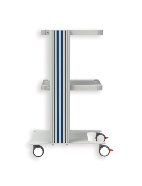 Ripiani resistenti regolabili in altezza, colonne di alluminio e 4 rotelle gemellate Ø 65 mm (2 con freno).