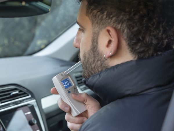 Apparecchio compatto per misurare la concentrazione d’alcol nell’alito, dotato di un’interfaccia grafica digitale con animazioni.