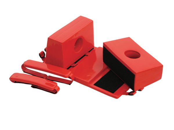 Formato da due blocchi testa e due fasce per impedire qualsiasi movimento della testa della persona infortunata durante il trasporto.