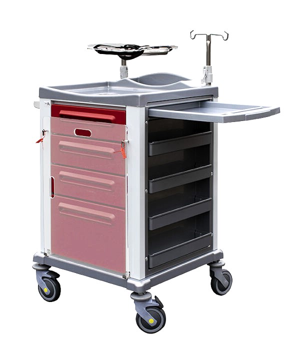 Carrello per emergenza completo con struttura in acciaio verniciato e finiture esterne in tecnopolimero.