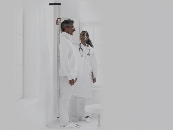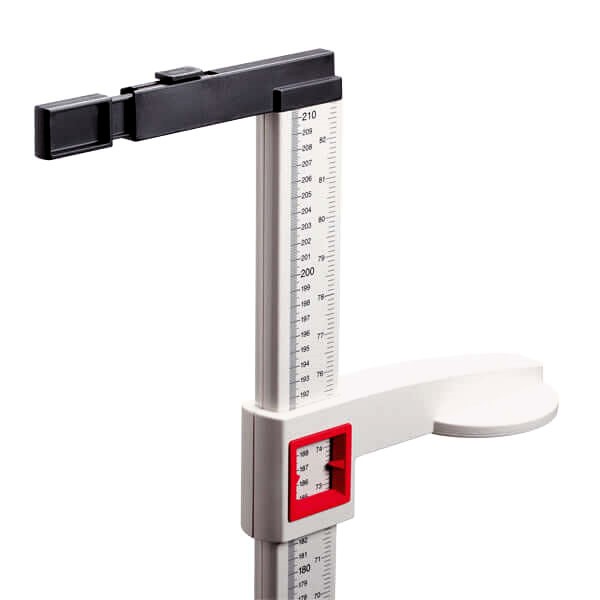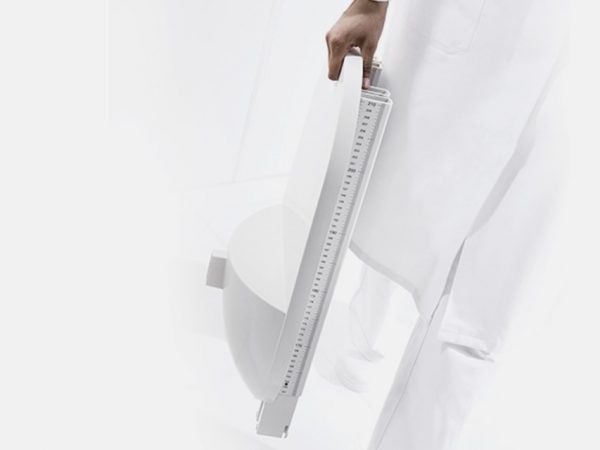 Stadiometro mobile per misurare l’altezza, semplice e facilmente trasportabile grazie alla maniglia integrata.
