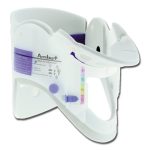 Il collare adulti Ambu® Redi-ACE™ blu è dotato di un supporto per il mento a posizionamento automatico e due linguette di blocco.