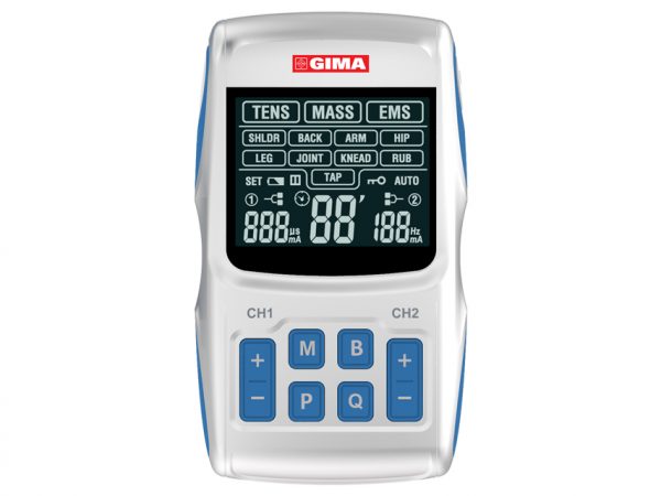 Gima-Ther è uno stimolatore a due canali con 3 funzioni di base: TENS, EMS e MASSAGGIO.