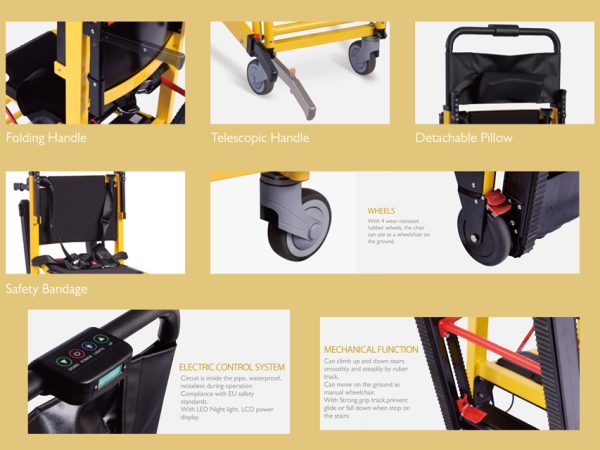 Sul terreno si spostano come carrozzine manuali. Il cingolo a forte aderenza evita che la sedia scivoli o si ribalti quando si ferma sulle scale.